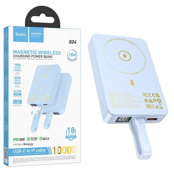 Externer Akku, PowerBank, kabellos und mit Kabel, 22,5 W + PD250 W, magnetisch, 10.000 mAh, blau