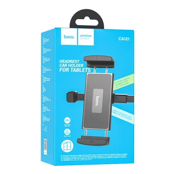 Hoco CA121 - Autohalterung, mit seitlichen Clips, Kopfstützenmontage, Tablet oder Telefon, 360°, verstellbarer Arm, Schwarz