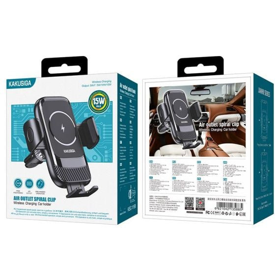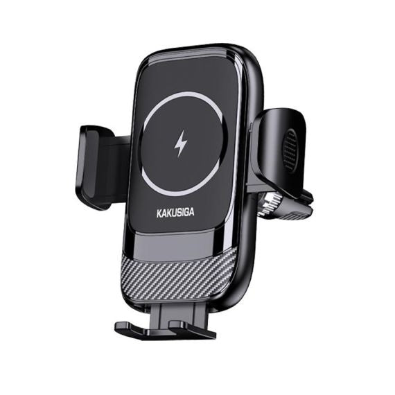 Kaku KSC1158 - Autohalterung, kabellos mit kabellosem Laden, 15 W, doppelte Fixierung, Belüftungsmontage, seitliche Klemmen, 360? Schwarz