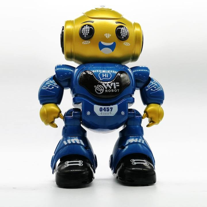 Intelligenter und interaktiver Roboter, Programmierbare Fernbedienung, Singt, tanzt, geht, LED-Leuchten, Blau