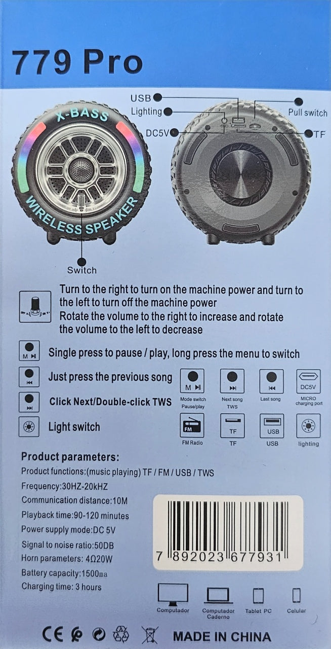 Discover the **Baso 779Pro** portable speaker, a 20W audio gadget that combines powerful sound with a non-conformist tire-shaped design. Perfect for music enthusiasts and urban style, this speaker offers **ample sound** and **deep bass**, making it ideal for any occasion, from parties to travel or simply enjoying your favorite tunes at home.