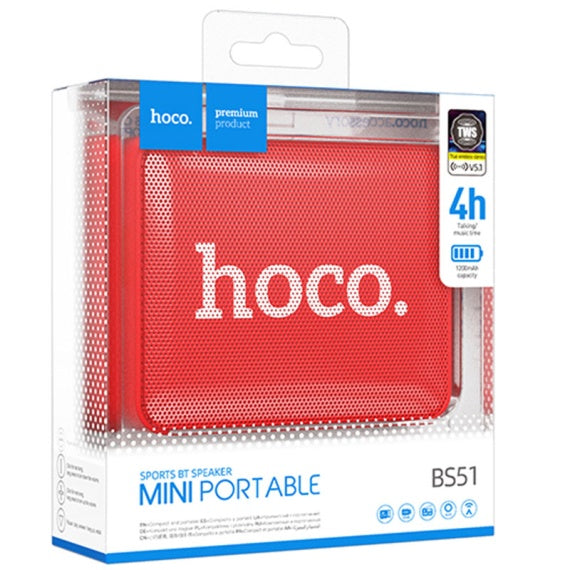 Hoco BS51 - Portable Speaker, Wireless Bluetooth 5.3, 5W, 1200mAh, Sport Brick, Red