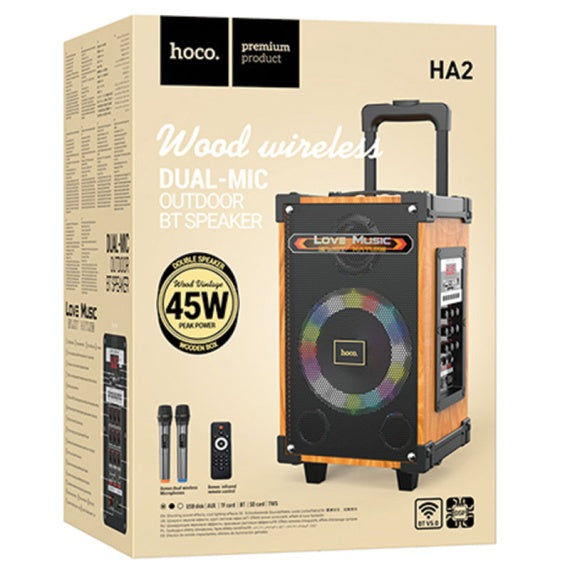 Hoco HA2 - Outdoor speaker, portable, 2 microphones, 4500mAh, TF Card, USB-A, AUX and TWS, 40W+5W, Black