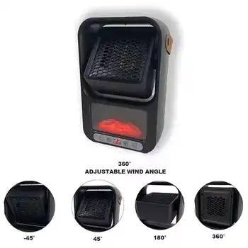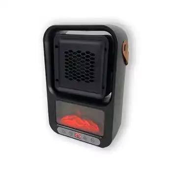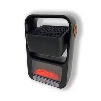 Portable electric heater, with temperature setting display and decorative screen, Black