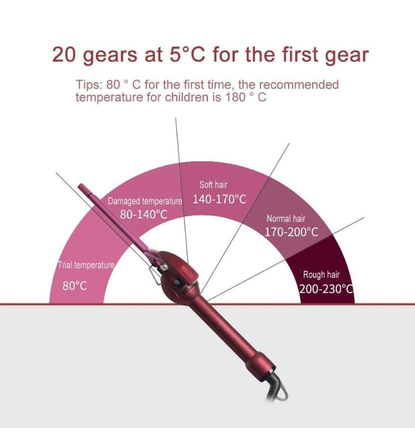 Discover the secret to perfectly defined curls with the **APB - Advanced Beauty Products** professional curling iron. Designed to provide complete control over your style, this 9mm PTC ceramic styling tool is the ideal choice for anyone who wants a spectacular look without compromising the health of their hair. The cool tip, a safety innovation, prevents heat transfer, protecting your hands from the heat emitted by the curling iron.