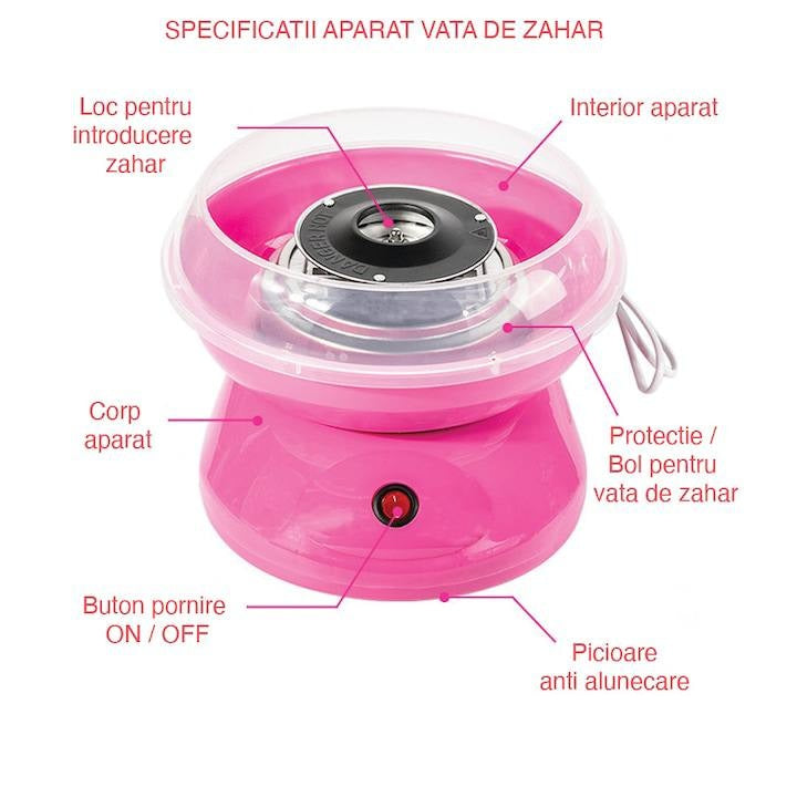 Transformă orice petrecere sau simplă după-amiază într-un eveniment memorabil cu acest **aparat de făcut vată de zahăr** semiprofesional. Conceput pentru a oferi o experiență delicioasă și distractivă, acest dispozitiv compact și puternic te ajută să pregătești vată de zahăr pufoasă și aromată, gata să încânte atât copiii, cât și adulții. Este soluția perfectă pentru a adăuga o notă de farmec și originalitate oricărei ocazii, de la aniversări la serile de film în familie.
