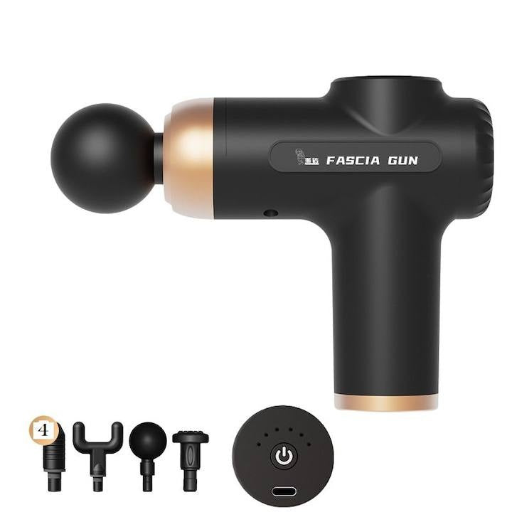 Aparat pentru Masaj, Tip pistol, 4 Capete Interschimbabile, Pentru Gat, Spate, Maini, Picioare, Anti Celulita, Negru