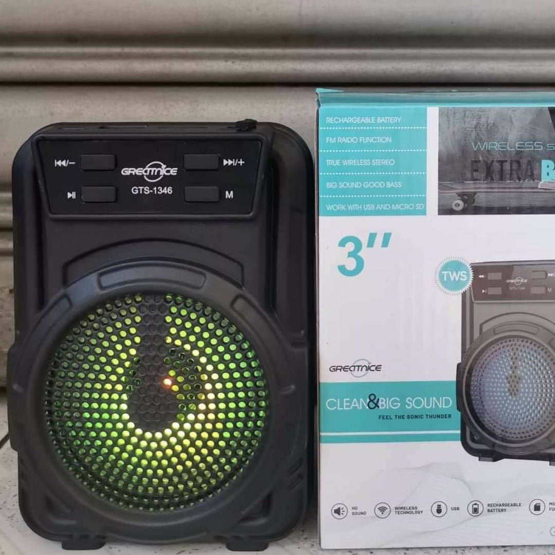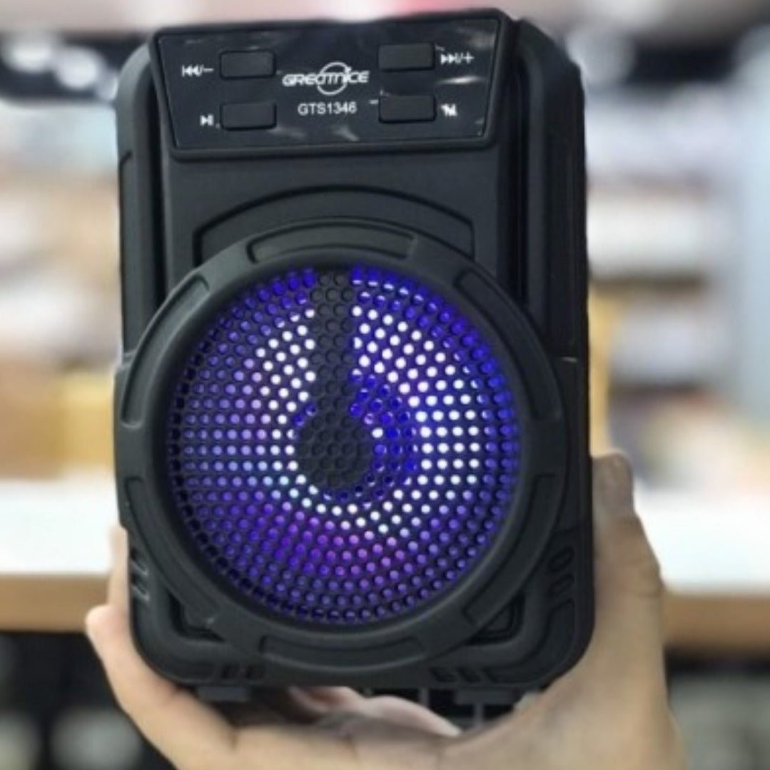 Transformă fiecare moment într-o petrecere memorabilă! Comandă acum boxa portabilă GTS-1346 și bucură-te de muzică și lumini oriunde!