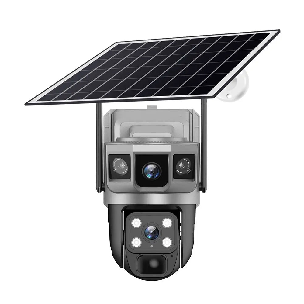 Asigură-ți siguranța cu camera de supraveghere V380 Pro VTS02, o soluție inteligentă și autonomă. Echipată cu două lentile (fixă și PTZ), îți permite să monitorizezi simultan mai multe zone pe un singur ecran. Alimentarea cu panou solar de 8W și bateria de 8000mAh o fac perfectă pentru locațiile fără curent electric sau infrastructură complexă.