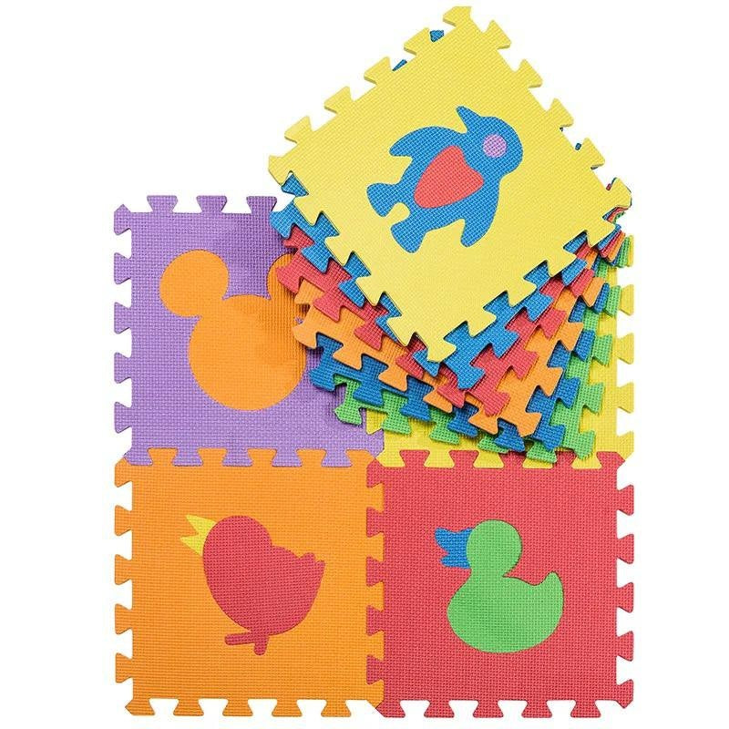 Covoras puzzle de joaca 10 piese, 30 x 30 cm, cu Animale demontabile colorat din bureta, Multicolor