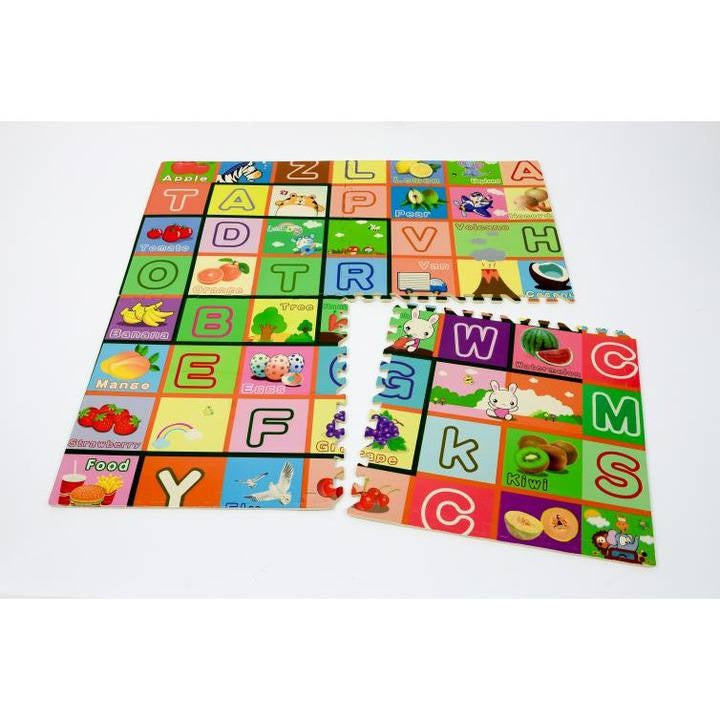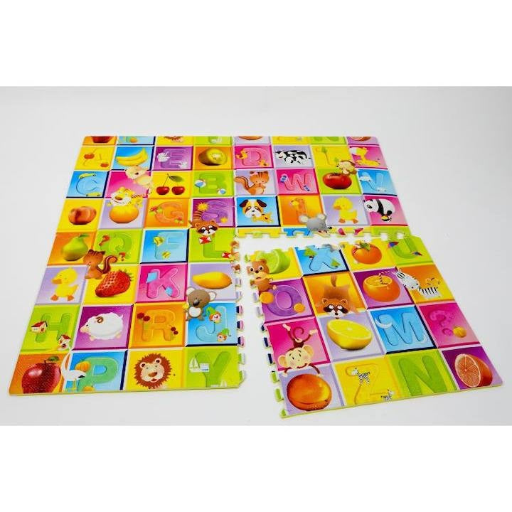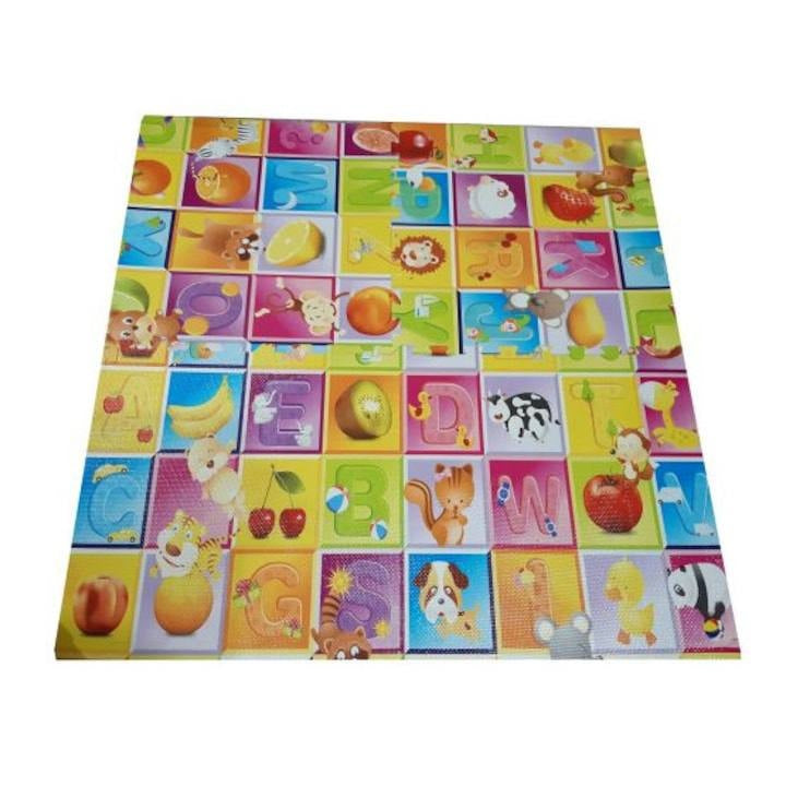 Covoras puzzle de joaca Mare 4 piese, 60 x 60 cm, cu Litere si Fructe, colorat din bureta, Multicolor