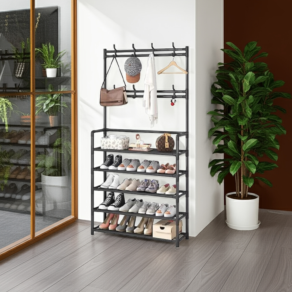 5 rafturi spațioase: Perfecte pentru a-ți aranja pantofii, cutiile de depozitare, gențile sau ghiozdanele.