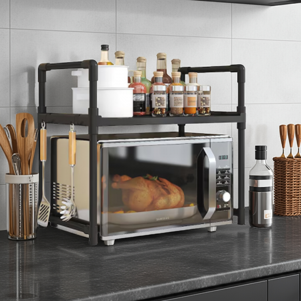 Etajeră pentru cuptor cu microunde, organizator din plastic durabil, 49x48x32 cm, culoare neagru