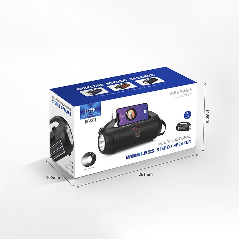 Această **boxă radio portabilă**, în nuanțe de roșu vibrant, combină tehnologia avansată și un design robust, fiind un partener de încredere pentru orice aventură în aer liber. Cu un sunet de calitate și funcții suplimentare, precum o **lanternă puternică** și un **radio FM integrat**, acest gadget este ideal pentru camping, călătorii sau drumeții. Sistemul de **încărcare solară** o face o soluție sustenabilă, perfectă pentru utilizarea în zone izolate, fără a depinde de o sursă de curent.
