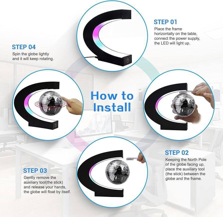 Glob Pamantesc Magnetic Plutitor cu Iluminare LED, Negru