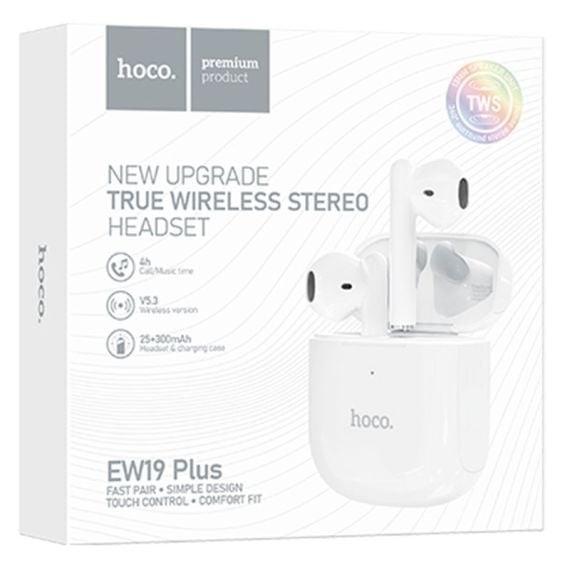 Hoco EW19 Plus - Casti Wireless, Ear Buds, Bluetooth 5.3, 180h StandBy, 300mAh, Delighted, Alb