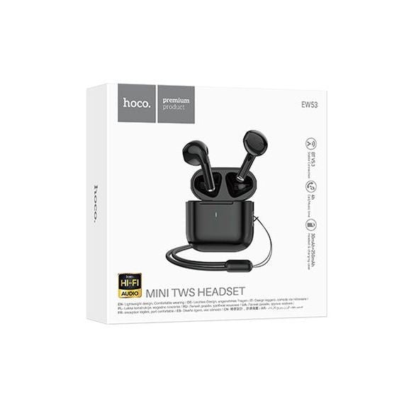 Hoco EW53 - Casti Wireless, Ear Buds, Bluetooth 5.3, Baterie 150h StandBy, 250mAh, Lanyard, Lucky, Negru