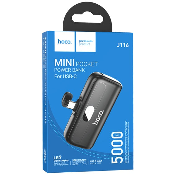 Hoco J116 - Baterie Externa, PowerBank, afisaj digital, conector Lightning, Compact Size, 5000mAh, 5V/2A, Negru
