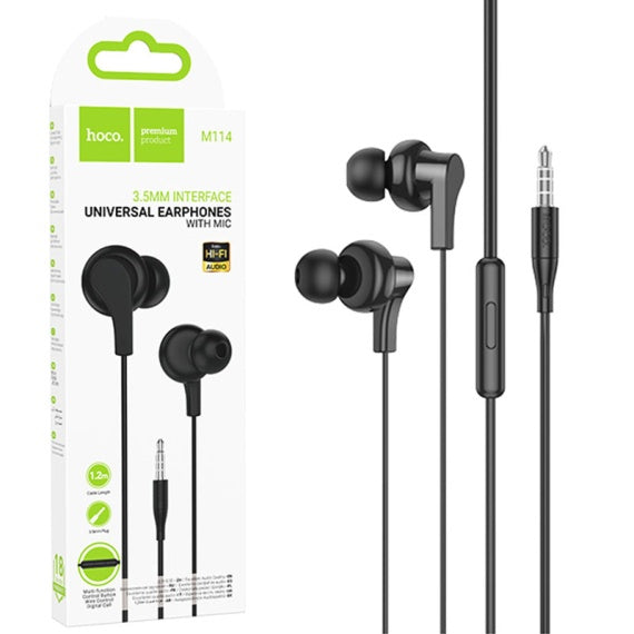 Hoco M114 - Casti cu Fir, In Ear, 3.5mm, 1.2m, Mic & Volume Key, Negru