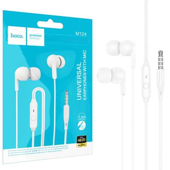 Hoco M124 - Casti cu Fir, In Ear, 3.5mm, 1.2m, Mic & Volume Key, HiFi, Alb