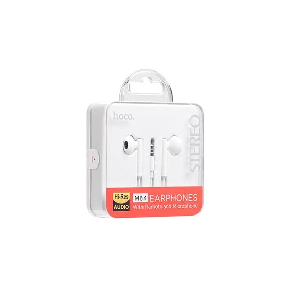 Hoco M64 - Handsfree, In Ear, 3.5mm, 1.2m, Driving, Mic & Volume Key, HiFi, Alb