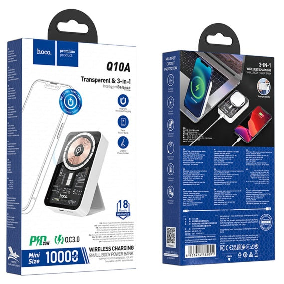 Hoco Q10A - Baterie externa 10000mAh cu MagSafe, USB-C 20W, Wireless Magnet, Alb