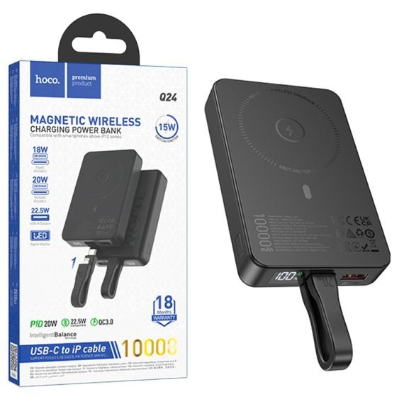 Hoco Q24 - Baterie Externa, PowerBank, Wireless si Cablu, 22.5W+PD250W, Magnetica, 10000mAh, Negru