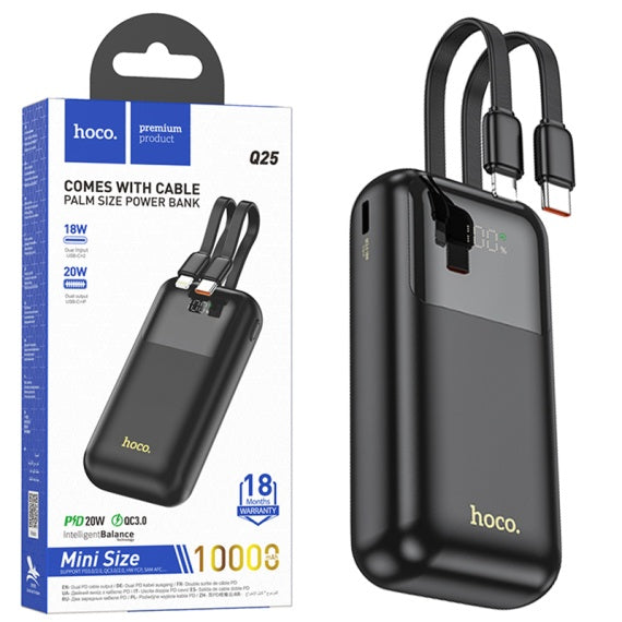 Hoco Q25 - Baterie Externa, PowerBank, cu mini-cabluri USB-C / Lightning x 20W, 5V, 2A, 10000mAh, Display LED, Graceful, Negru