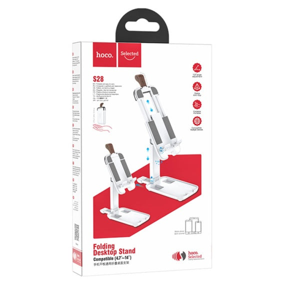 Hoco S28 - Suport Birou, Stand, pentru telefon / tableta, MultiAngle, Folding, Metalizat, Alb