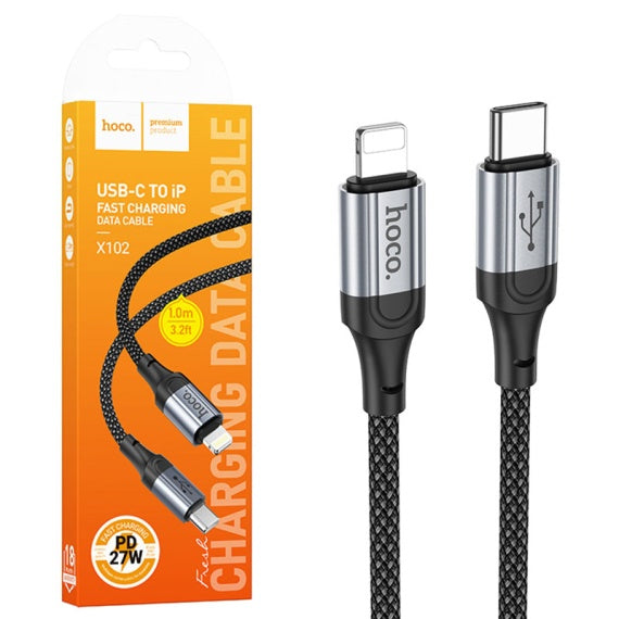 Hoco X102 - Cablu Date si Incarcare, USB-C la Lightning, PD27W, QC3.0, Braided, 1m, Negru
