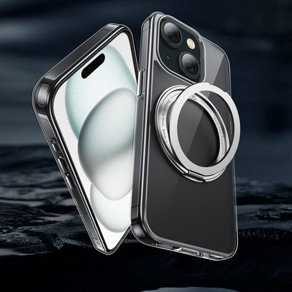 Husa Hoco AS1 - iPhone 15 Plus, MagSafe, Ring Stand, Frosted, Transparent