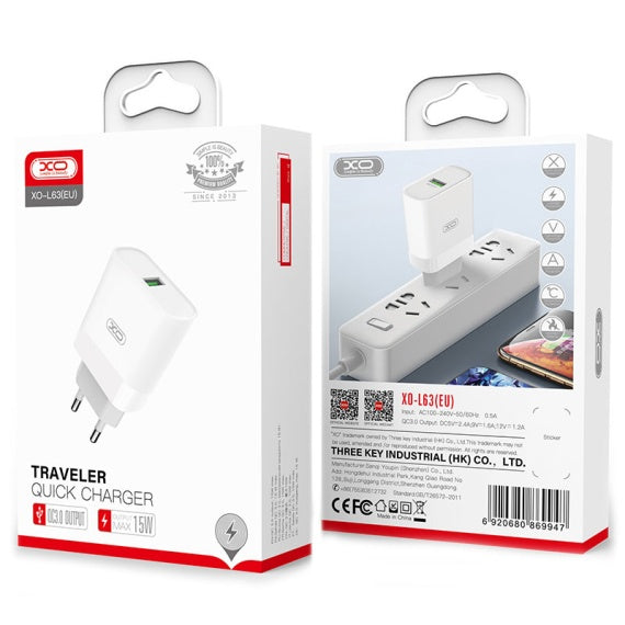 Încărcătorul XO L63 a fost conceput pentru a oferi o încărcare rapidă într-un format discret. Portul USB-A cu tehnologia Quick Charge 3.0 asigură o putere de 15W, permițând o încărcare mult mai rapidă decât adaptoarele standard.