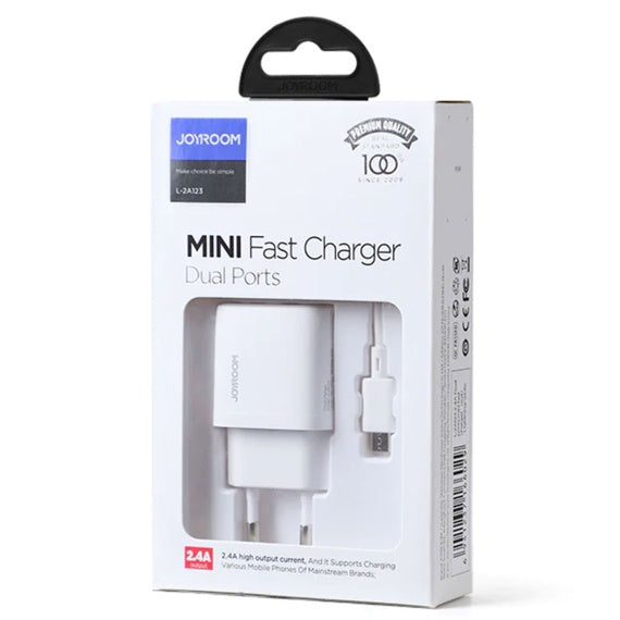 Joyroom L-2A123 - Incarcator Retea + Cablu MicroUSB, 12W, 2.4A, 2xUSB-A, QC 3.0, Alb