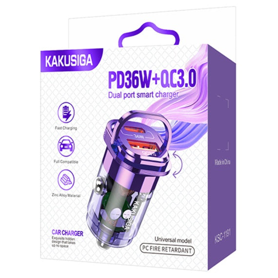 Kaku KSC-1191 - Incarcator Auto, PD36W, 1xUSB-C, 1xUSB-A, Violet