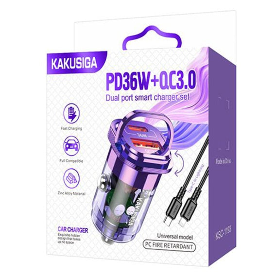 Kaku KSC-1193 - Incarcator Auto + Cablu Lightning, 1m, PD36W, 1xUSB-C, 1xUSB-A, Violet