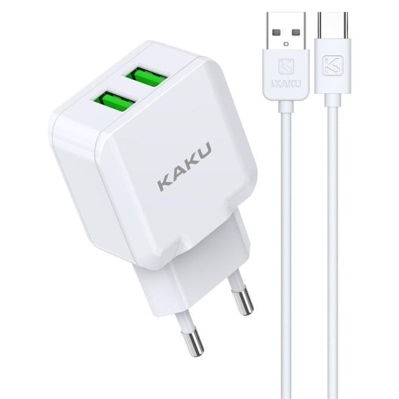 Kaku KSC-414- Incarcator Retea + Cablu Lightning, 10W, 2.4A, 2xUSB-A, QC 3.0, Alb