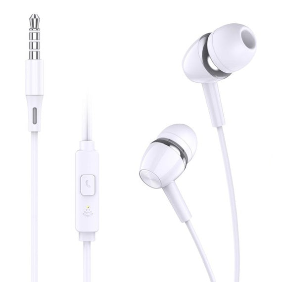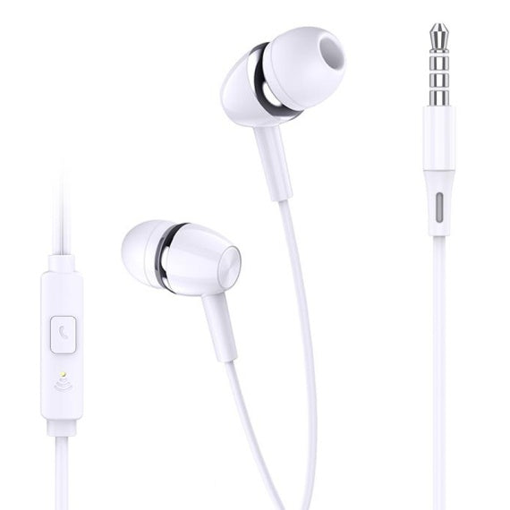 Căști in-ear cu fir, ușoare și compacte, ideale pentru utilizare zilnică, apeluri telefonice, muzică sau conținut multimedia.