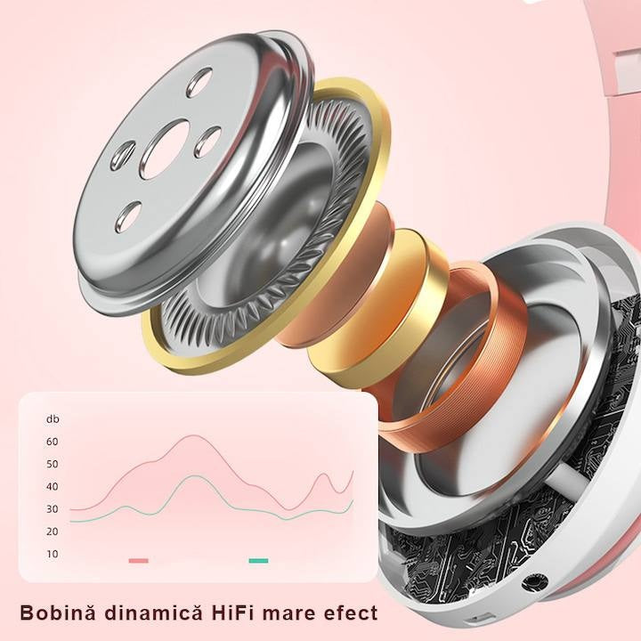 Căști Wireless KidsCAT K03: Distracție Audio și Design Jucăuș pentru Copii