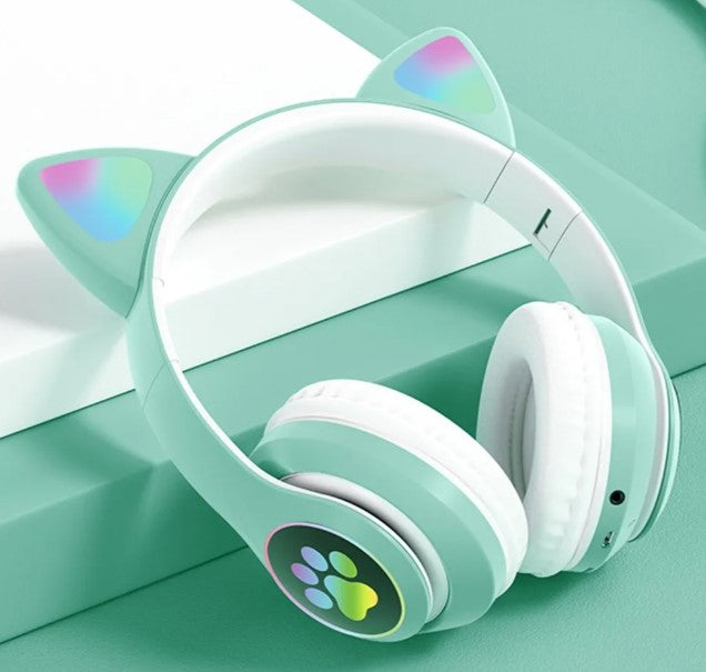 KidsCAT K03 - Casti Wireless pentru Copii cu Urechi de Pisica si LED, Verde