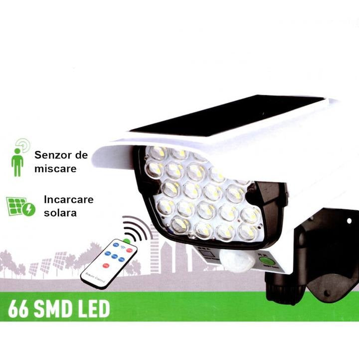 Această cameră falsă este echipată cu 66 de LED-uri SMD și un senzor de mișcare avansat, oferind trei moduri de iluminare inteligentă, controlate cu ajutorul unei telecomenzi: