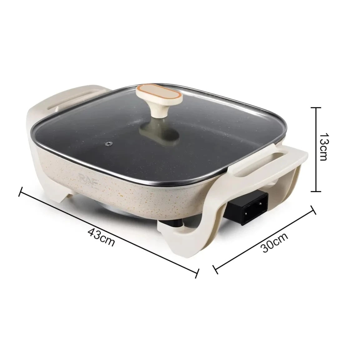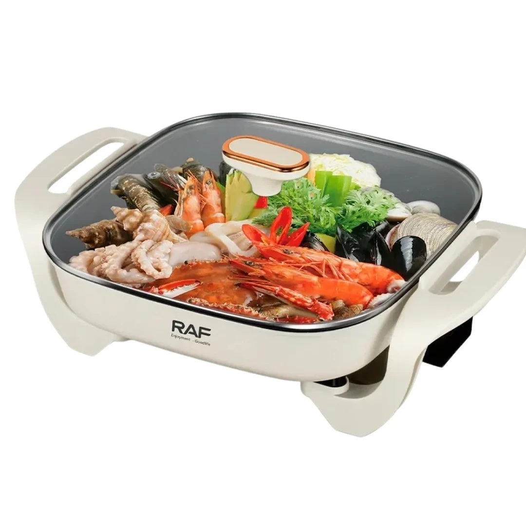 Raf R5400 – oală electrică Hot Pot multifuncțională 5L, 1200W, cu termostat și suprafață antiaderentă. Ideală pentru gătit rapid și porții mari acasă.