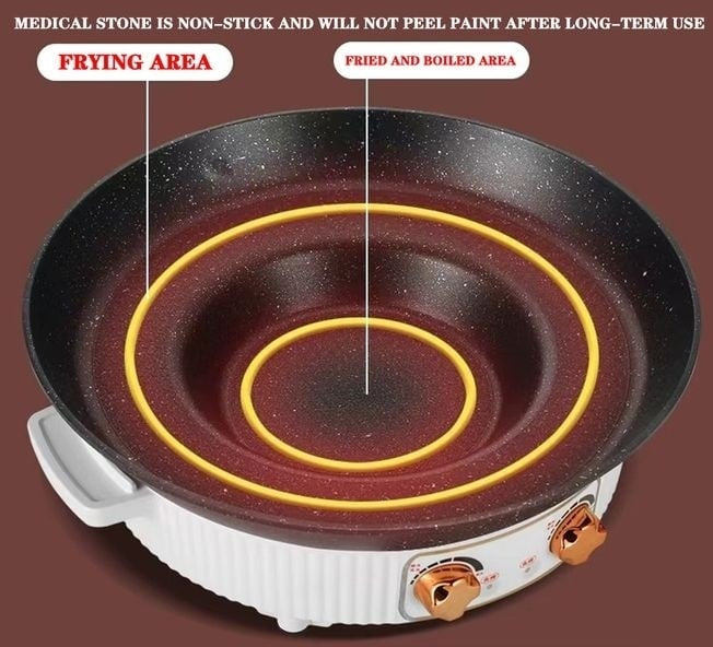 Raf R5416 – tigaie electrică 2 în 1, 1600W, capacitate 2L, pentru prăjire și fierbere, alb-negru. Ideală pentru preparate rapide și versatile acasă.
