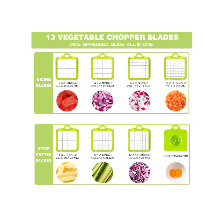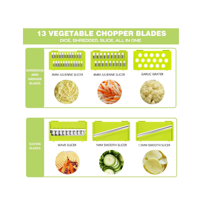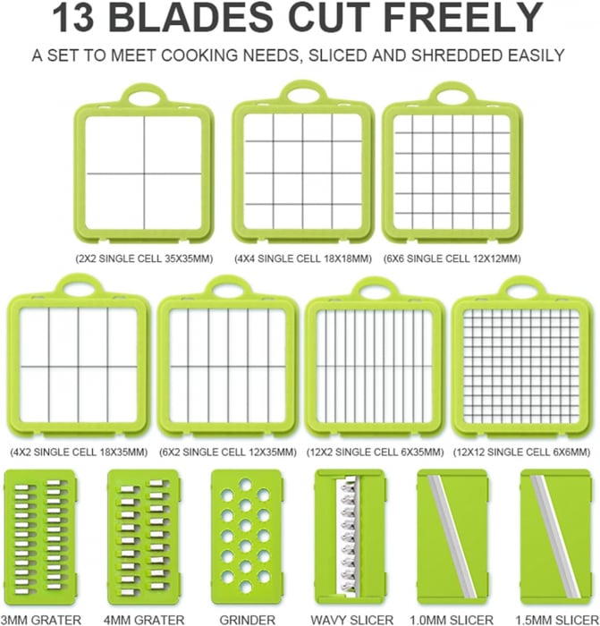 Simplifică prepararea meselor cu această răzătoare multifuncțională, un adevărat ajutor în bucătărie, care combină funcționalitatea și eficiența într-un singur produs. Cu 22 de piese esențiale și un design ingenios, îți oferă posibilitatea de a felia, rade, toca și separa cu ușurință, economisind timp și efort.