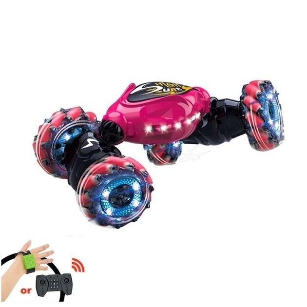 RC01 - Masina cascadorii 4x4 cu telecomanda, control gesturi, lumini LED, baterie reincarcabila, roz/rosu