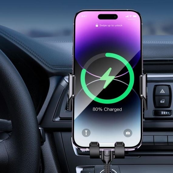Suport Auto pentru Telefon cu Încărcare Wireless 15W – Smartix, Negru