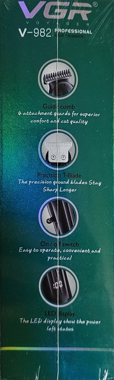 Obține o tunsoare impecabilă și un stil definit cu acest trimmer cordless VGR V982. Conceput pentru a oferi precizie și confort, acest aparat de tuns profesional este echipat cu **lame ascuțite din oțel inoxidabil** pentru a garanta o tăietură uniformă și de înaltă calitate, indiferent de tipul de păr. Este soluția ideală pentru a-ți menține aspectul îngrijit, fie acasă, fie în salon.