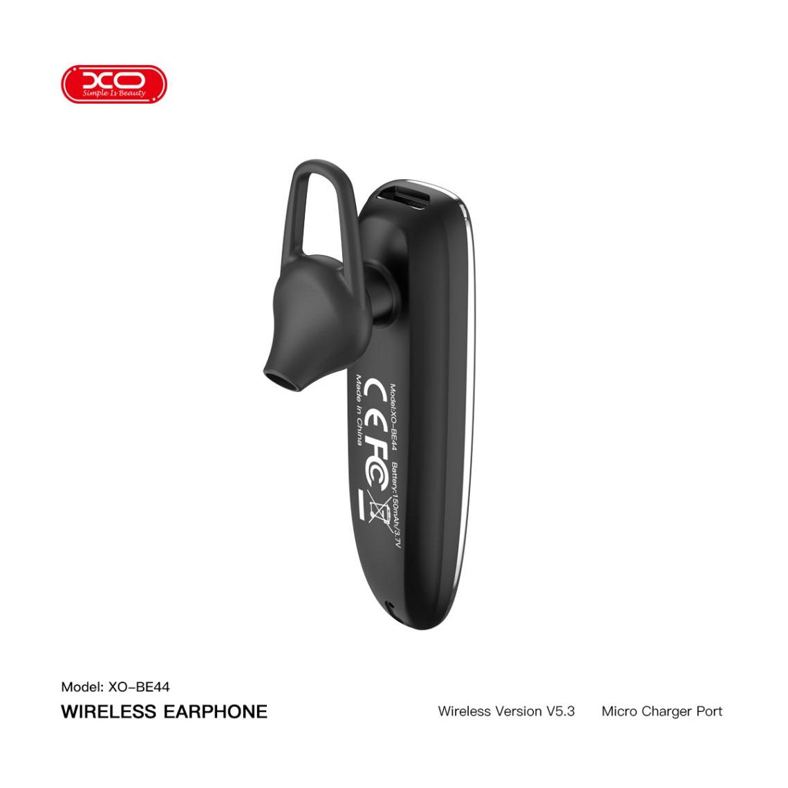 XO BE44 - Handsfree Bluetooth Ear Bud, BT 5.1, 150mAh, Driving, Negru,