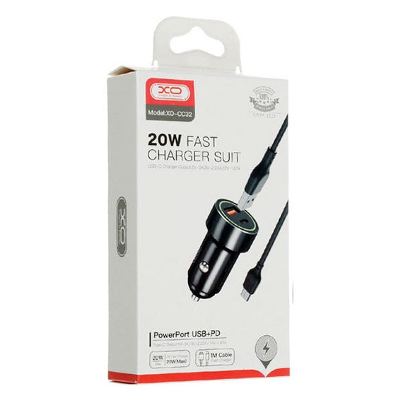 Încărcător Auto XO CC32 cu Cablu USB-C: Încărcare Duală Rapidă de 20W