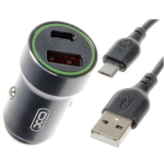 XO CC32 - Incarcator auto 20W PD QC 3.0 cu 1xUSB-C si 1xUSB-A-A + cablu USB-C, negru