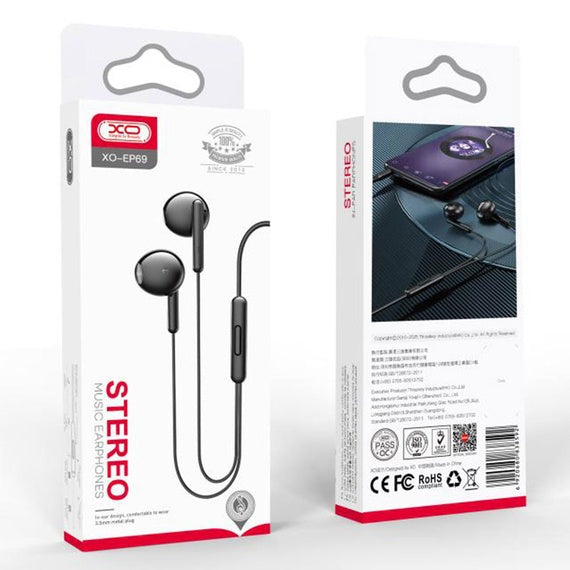 XO EP69 - Casti cu fir In Ear 3.5mm 1.2m, HiFi, microfon & control volum, negru
